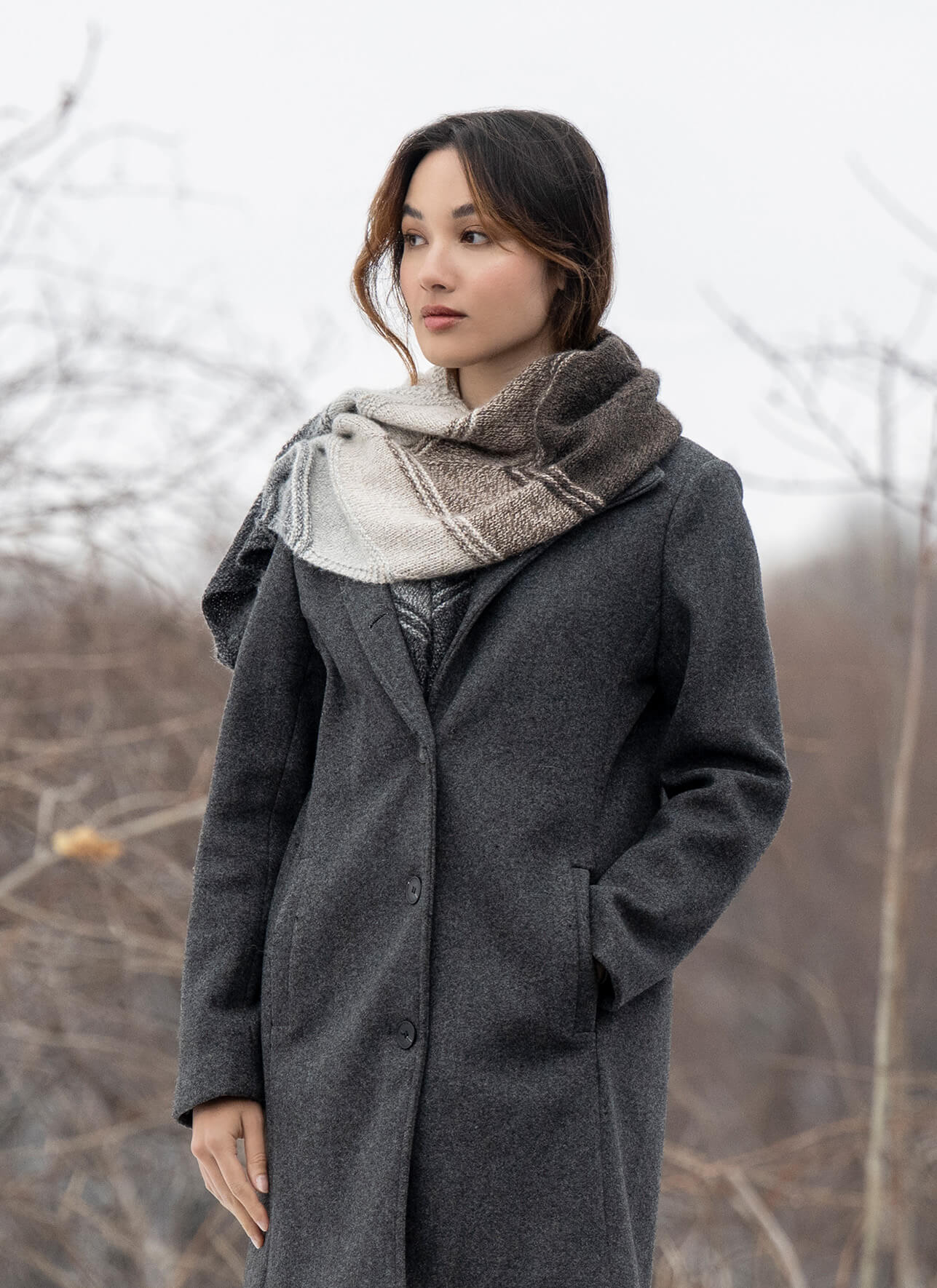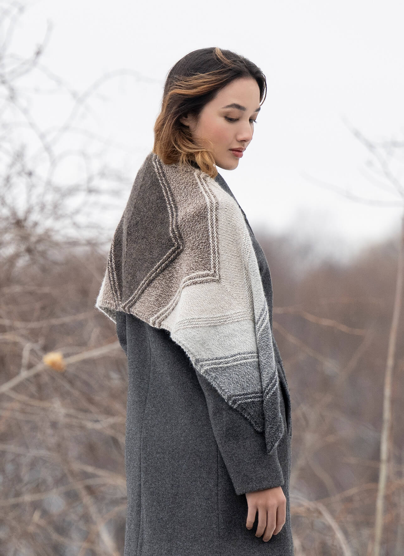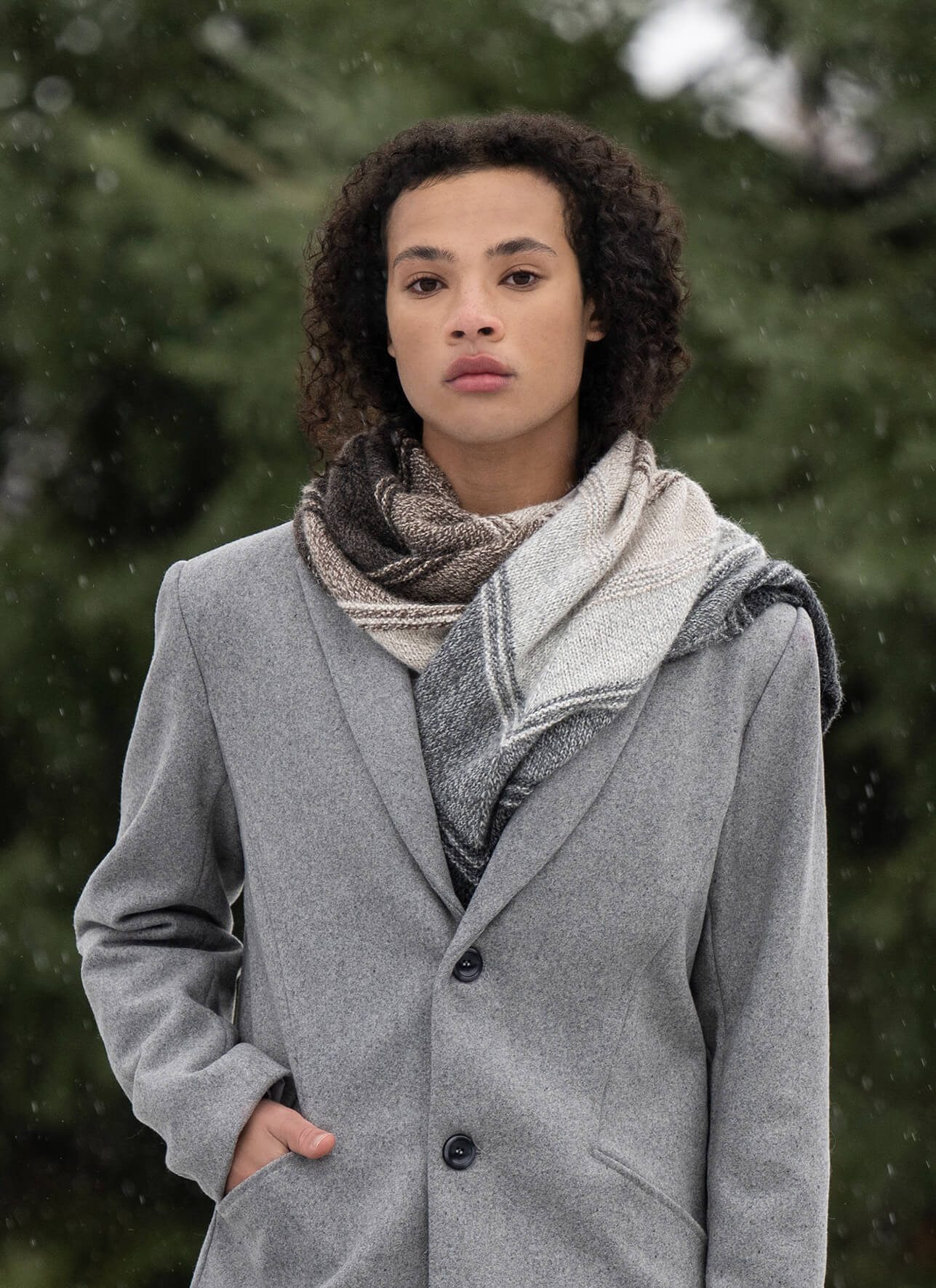 This unisex wrap is knit using six marled colors of Baby Alpaca. This wrap is a great advanced beginner knit.
