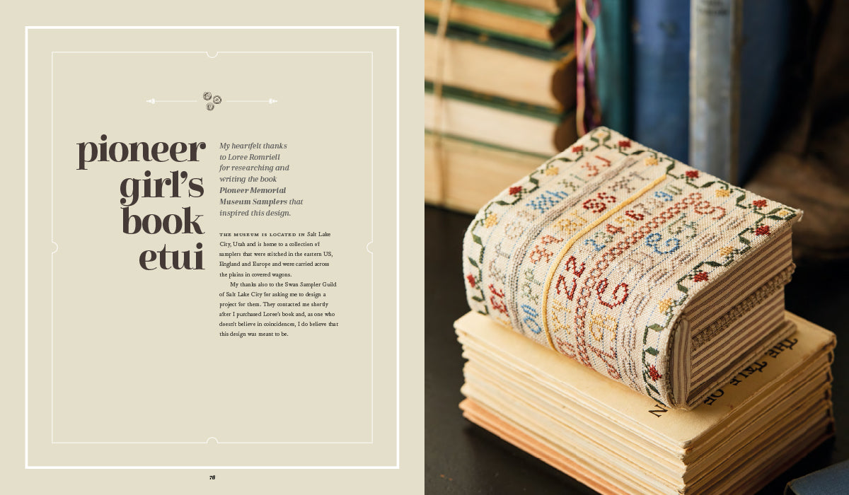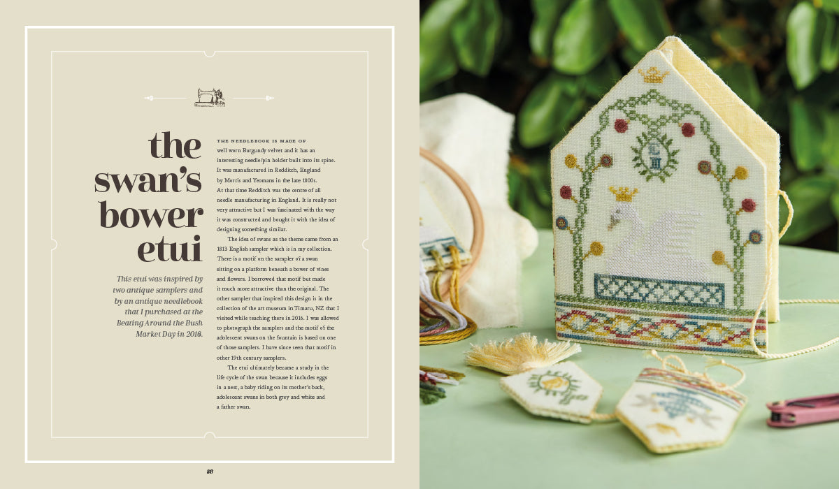 Discover the wonders that await inside each embroidered case as Betsy shares how to stitch and construct not only the etuis, but every pin cushion, thimble case, scissor sheath, fob, thread winder and needlebook.