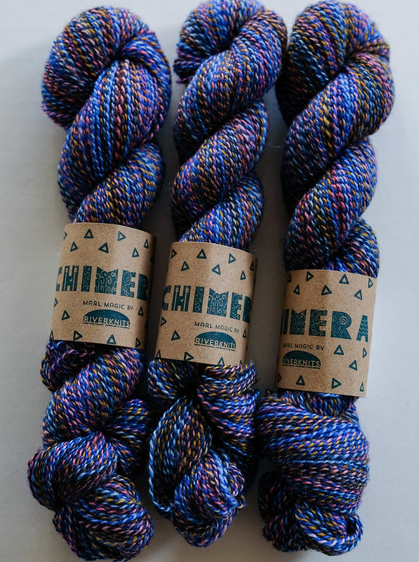 Chimera is a hand-dyed marl entirely unique to RiverKnits! It is a smooth, worsted-spun 2-fold yarn with a lot of lustre and amazing softness. The Bluefaced Leicester breed produces wool that is strong and next-to-skin soft, making it ideal for a wide range of projects. This yarn will work fantastically in statement shawls, hats, mittens, and jumpers.