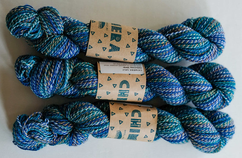 Chimera is a hand-dyed marl entirely unique to RiverKnits! It is a smooth, worsted-spun 2-fold yarn with a lot of lustre and amazing softness. The Bluefaced Leicester breed produces wool that is strong and next-to-skin soft, making it ideal for a wide range of projects. This yarn will work fantastically in statement shawls, hats, mittens, and jumpers.
