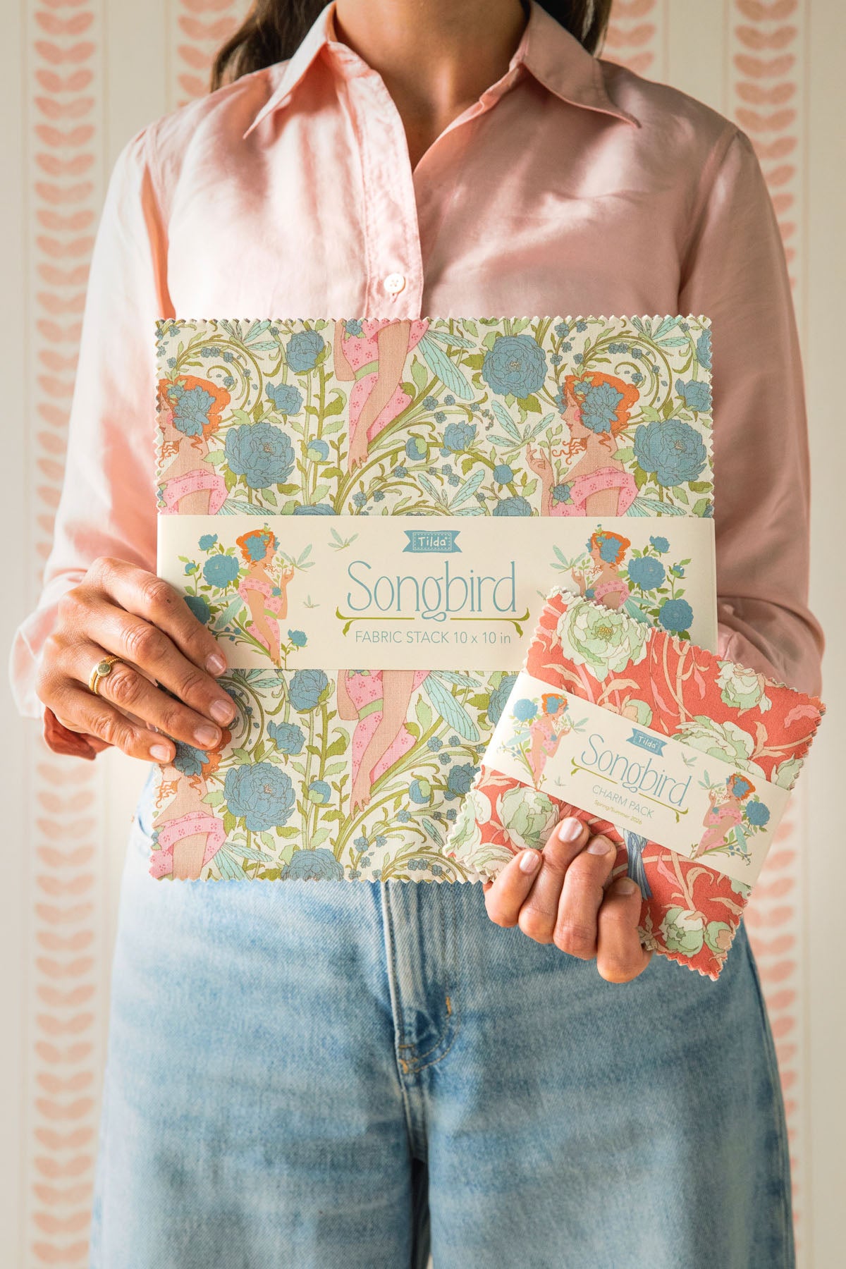 Fabric, Charm pack 40 pieces, 5"x5" each from Tilda, SONGBIRD Collection, TIL300259